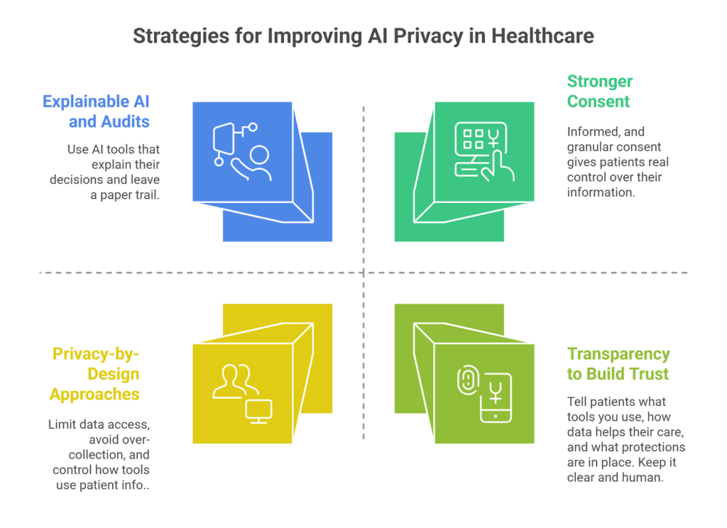 This doesn’t need to be a full lecture on AI governance. Even a short email, EHR notice, or front-desk explanation can go a long way in showing patients you respect their privacy.